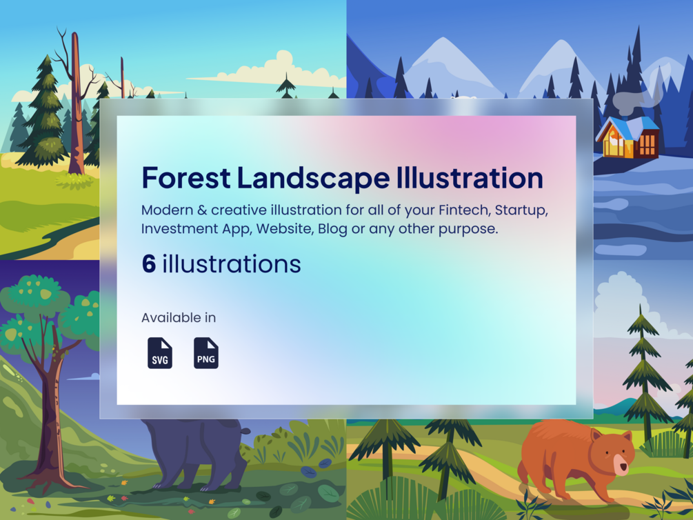 Forest Landscape Illustrations invites us to wander amidst the towering trees, embrace the solitude and find solace in the symphony of rustling leaves and nature.